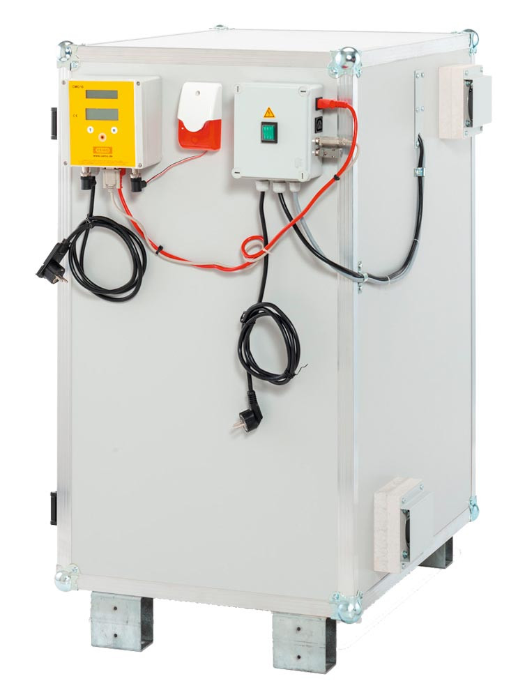 Akku-Ladeschrank, Premium Plus, strombetriebener Rauchmelder, BxTxH 800x660x620mm, Tür orange, Stapelfüße Korpus grau E6480006