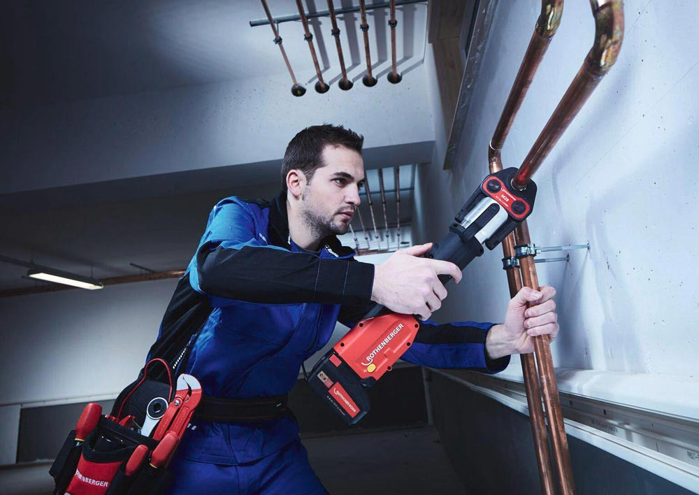 Das ROMAX 4000 Set EU beinhaltet die Pressbacken der Kontur M in den Größen 15-22-28 mm. Die elektrohydraulische · radiale Pressmaschine ROMAX 4000 eignet sich ideal zum systemkonformen Verpressen von Fittings aus Metall · Kunststoff- und Mehrschichtverbundsystemen (MSR) bis 110 mm. Die ROMAX 4000 verpresst Fittings mit einer Kolbenkraft von 32-34 kN und einem Presszyklus von 5 Sekunden. Ergonomisches und energieeffizientes Arbeiten auch über längere Zeit · werden durch das geringe Gewicht von 3,6 kg und einer ausgewogene Gewichtsverteilung ermöglicht. Konstante Presskraft über den kompletten Presszyklus wird durch die Constant Force Technology (CFT) garantiert. Durch das verbesserte Serviceintervall von 40.000 Presszyklen / 2 Jahren · wird eine hohe Produktivität gewährleistet. Geringes Gewicht von 3,6 Kg für ermüdungsfreies Arbeiten auch in schwierigen SituationenSchnelles Arbeiten durch Verpressungen unter 5 SekundenErhöhte Leistungskapazität durch verbesserte Akku-TechnologieErhöhter Serviceintervall nach 40.000 Verpressungen / 2 Jahren Die elektrohydraulische Akku-Pressmaschine zum systemabhängigen Verpressen von Fittingen in der Sanitär- · Heizungs- oder Klimabranche.