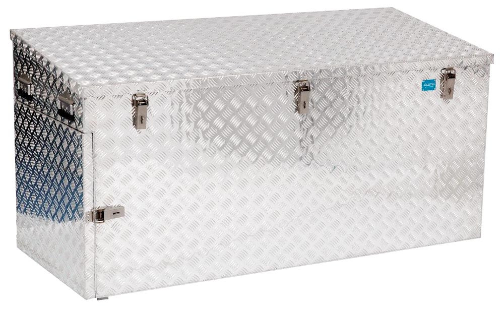Aluminium Riffelblech-Box, BxTxH innen 1678x675x730/830 mm, mit Seitentüren und abgeschrägtem Deckel, Vol. 883