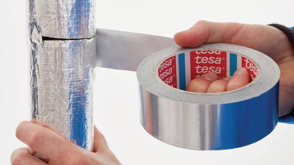 mechanisch stabil und anschmiegsam bei gewölbten Oberflächen · für permanente Anwendungen · Abdichtung gegen Feuchtigkeit, Dampf und Gas, zum Verkleben von Kühlleitungen und Spulen in der Haushaltsgeräte-Industrie, zum Zusammenfügen und Abdichten bei thermischer Isolation und von Schächten z.B. in der Metallbau-Industrie · Trägermaterial: Aluminiumfolie (50 μm) · elektrisch und thermisch leitfähig · alterungsbeständig · hitze- und lichtreflektierend · flammhemmend gemäß DIN 4102 (B1) sowie nach den Anforderungen UL 510A · Temperaturresistent von -40 °C bis +160 °C