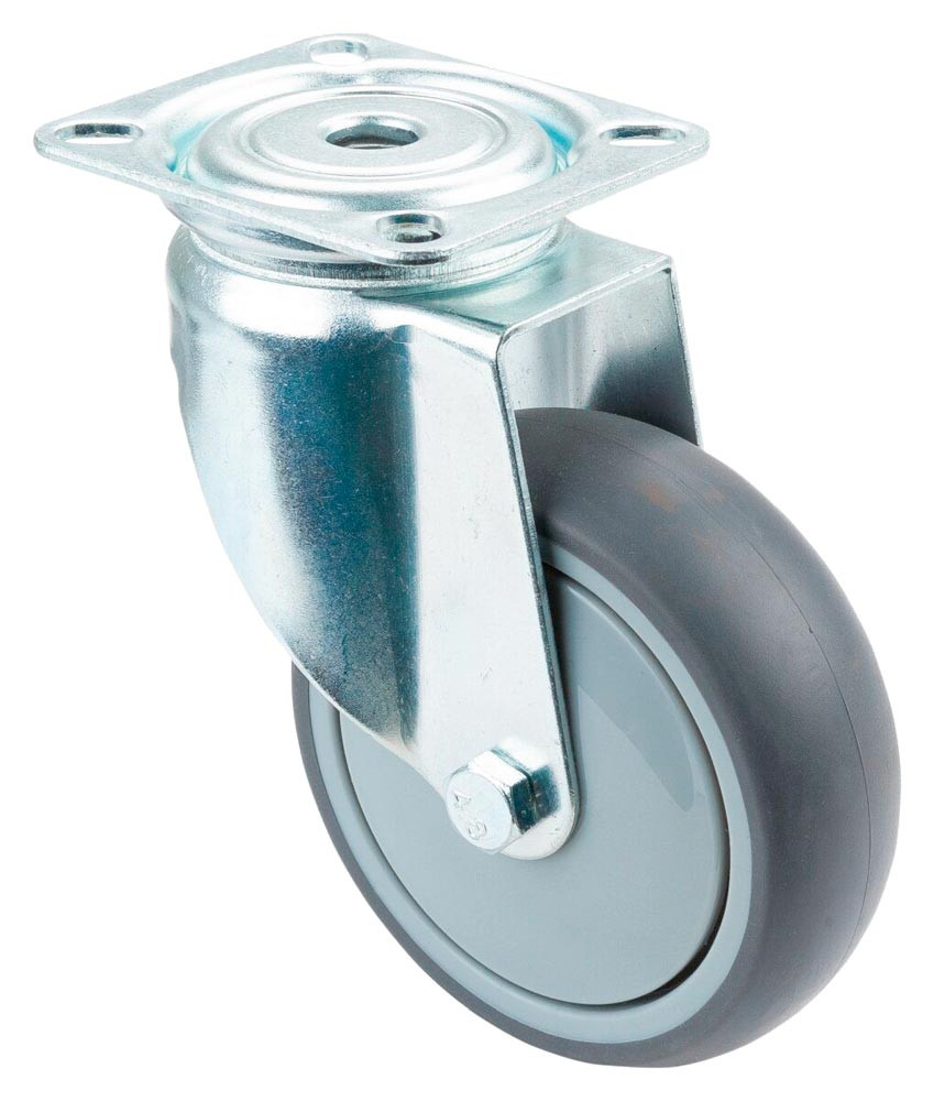 Apparate-Lenkrolle, Gummi grau, Durchm. 100 mm, Traglast 80 kg, Kugellager, Anschraubplatte