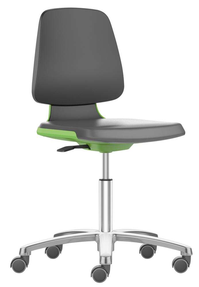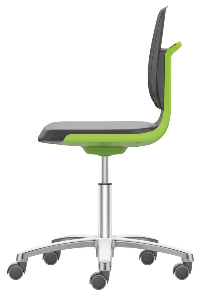 Arbeitsdrehstuhl mit Flex-Rückenlehne u. Sitzkante, Sitzschale grün, Sitz Stoff schwarz, Rollen, Sitz Höhe 450-650 mm
