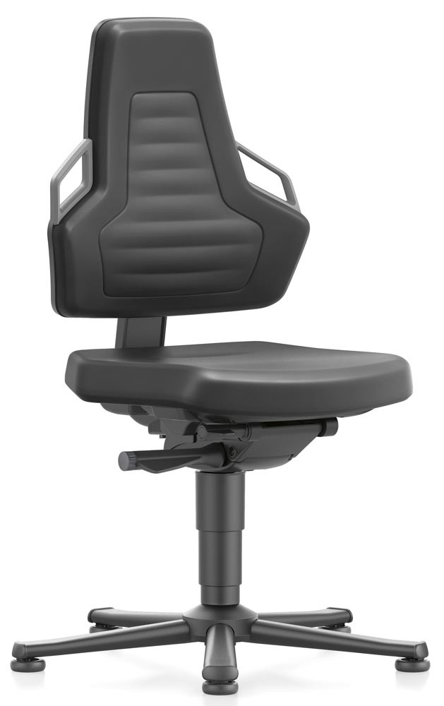 Arbeitsdrehstuhl mit autom. Gewichtregulierung, Sitz Kunstleder schwarz, Griffe grau, Gleiter, Sitz Höhe 450-600 mm E6042549