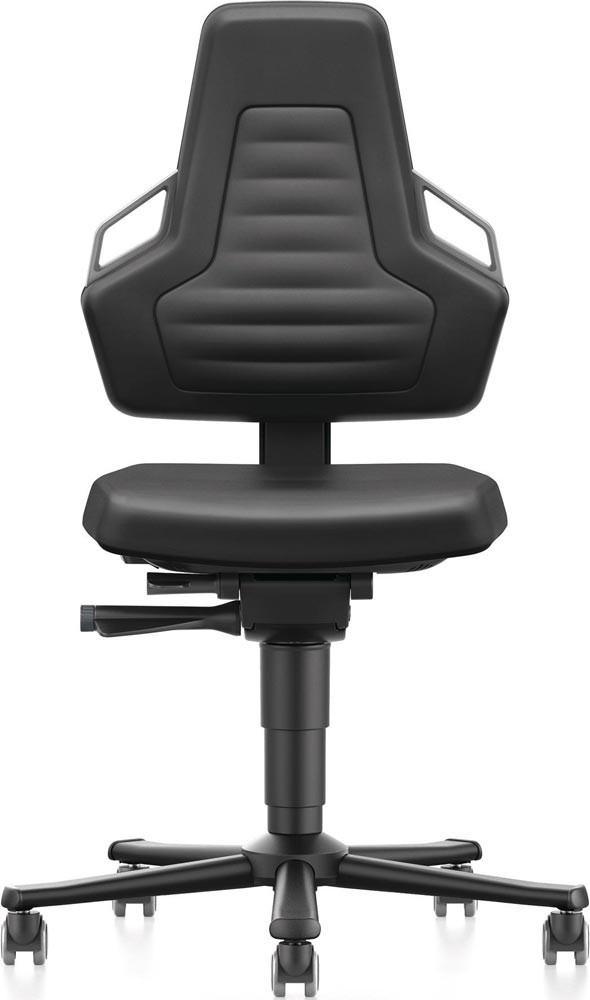 Arbeitsdrehstuhl mit autom. Gewichtregulierung, Sitz Integralschaum schwarz, Griffe grau, Rollen, Sitz Höhe 450-600 mm E6042559