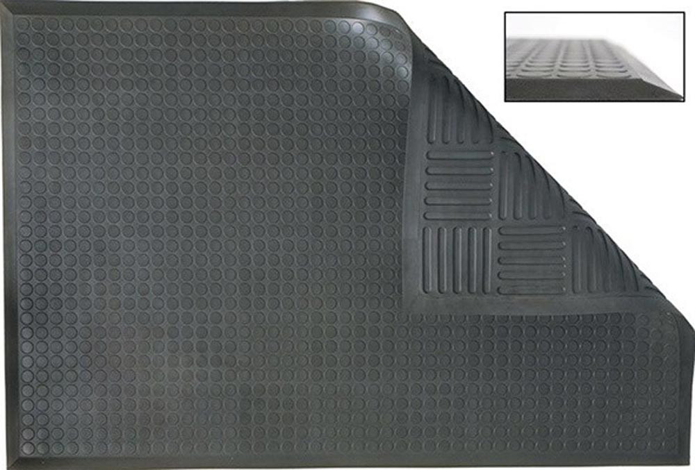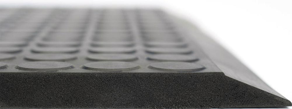 ergonomische, anti-ermüdende Matte bestens geeignet für Dreh- und Laufbewegungen · ausgestattet mit Flachnoppen, Material Polyurethan · Materialstärke 11 mm, mit abgeschrägten Kanten · resistent gegen geringe Mengen von Ölen und anderen Flüssigkeiten · Einsatzbereich trockene Montage- und Verpackungsbereiche · antistatisch · feuerhemmend nach Norm EN 13501-1