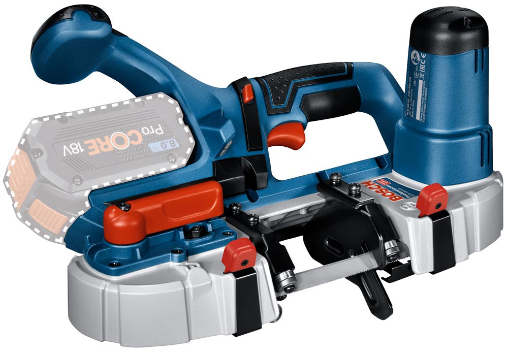 Kompakte Akku-Bandsäge für komfortables Arbeiten in engen Bereichen ∙ Werkzeugloser Blattwechsel über Vorrichtung zum Lösen der Blattspannung und Standardschutzvorrichtung mit Metallclips ∙ Vibrationsfreier Sägeblattlauf ∙ LED-Licht für komfortables Arbeiten