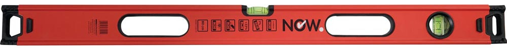 Alu-Profil: 65 mm x 28 mm, Profilstärke: ca. 1,6 mm · 2 stoßfeste Acrylglass-Blocklibellen, davon 1 x vergrößerte Horizontallibelle · Messgenauigkeit in Normallage: ± 0,5 mm/m · gummierte stoßdämmende Endkappen · 2 Handgriffe · gummierte Wandrutschstopper