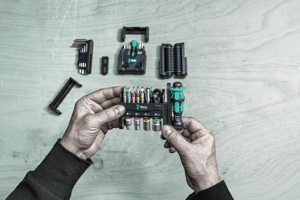Superkompaktes 21-teiliges Werkzeugset für Hand- und Maschinen-Verschraubung ∙ Perfekt für unterschiedlichste Verschraubungen mit ¼" Knarre, Hand oder Maschine ∙ Kann mit dem Tool-Check Modular Adapter oder dem flexiblen Tool-Check Modular Scharnier mit anderen Elementen des Tool-Check Modular Systems verbunden werden