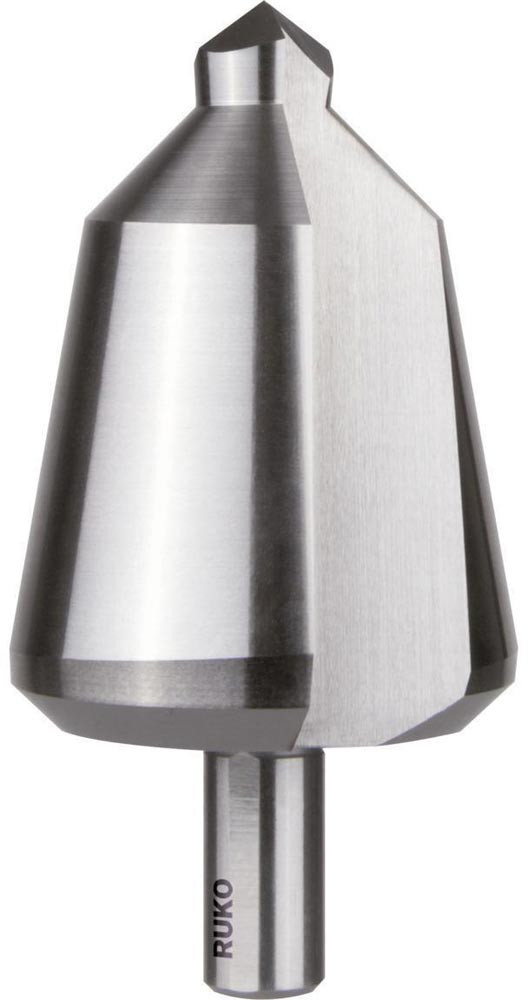 Schaft mit 3 Spannflächen · mit 2 Schneiden · Senkwinkel 20-30 ° · Kreuzanschliff · rechtsschneidend · der Konus erleichtert das Zurückziehen bei durchgebohrten Blechen