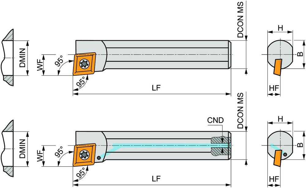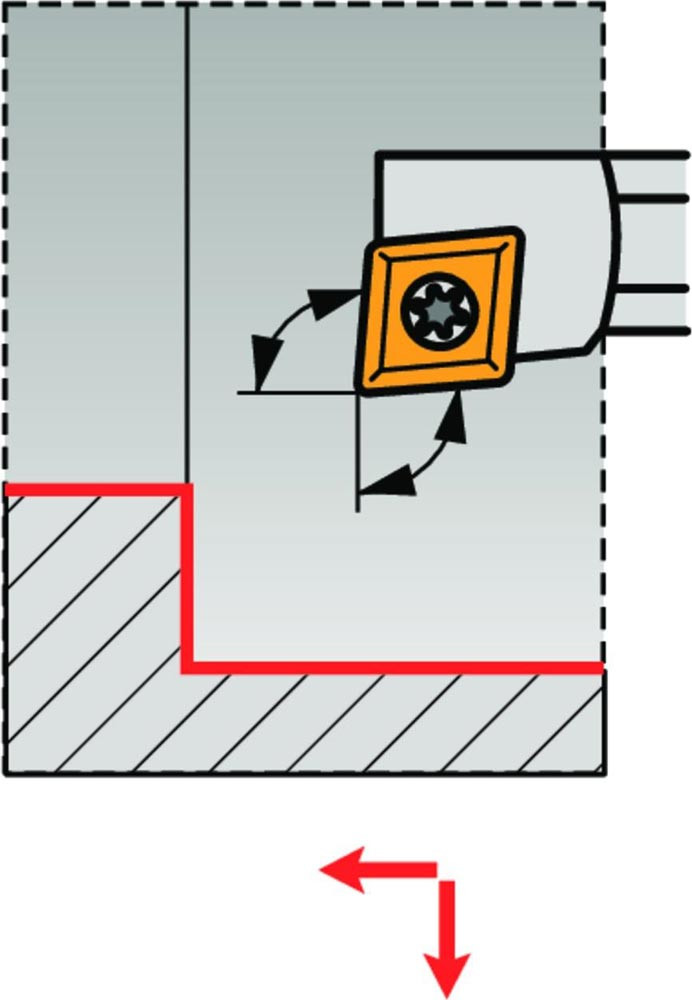 Dreh-Bohrstange mit Schraubklemmung zum spannen von 80° Rhombus positive Wendeschneidplatten mit einem Innenkreisdurchmesser von 6.35mm · 2.38mm Dick (ISO Bezeichnung CC.. 0602.. ) · rechte Ausführung zum 95° Stirn-und Längsdrehen mit abgesetzem Schaft · Stahl ohne Kühlkanalbohrung · 8mm Durchmesser x 80mm Länge für Innenkegeldrehen und Längsdrehen mit und ohne Schulter