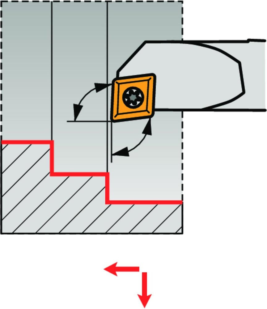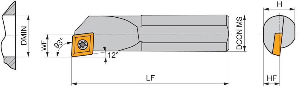 Dreh-Bohrstange mit Schraubklemmung zum spannen von 75° Rhombus positive Wendeschneidplatten mit einem Innenkreisdurchmesser von 7.94mm · 3.18mm Dick (ISO Bezeichnung EC.. 0803.. ) · linke Ausführung zum 93° Längsdrehen mit abgesetzem Schaft · Stahl ohne Kühlkanalbohrung · 12mm Durchmesser x 150mm Länge für Innenkegeldrehen und Längsdrehen mit und ohne Schulter