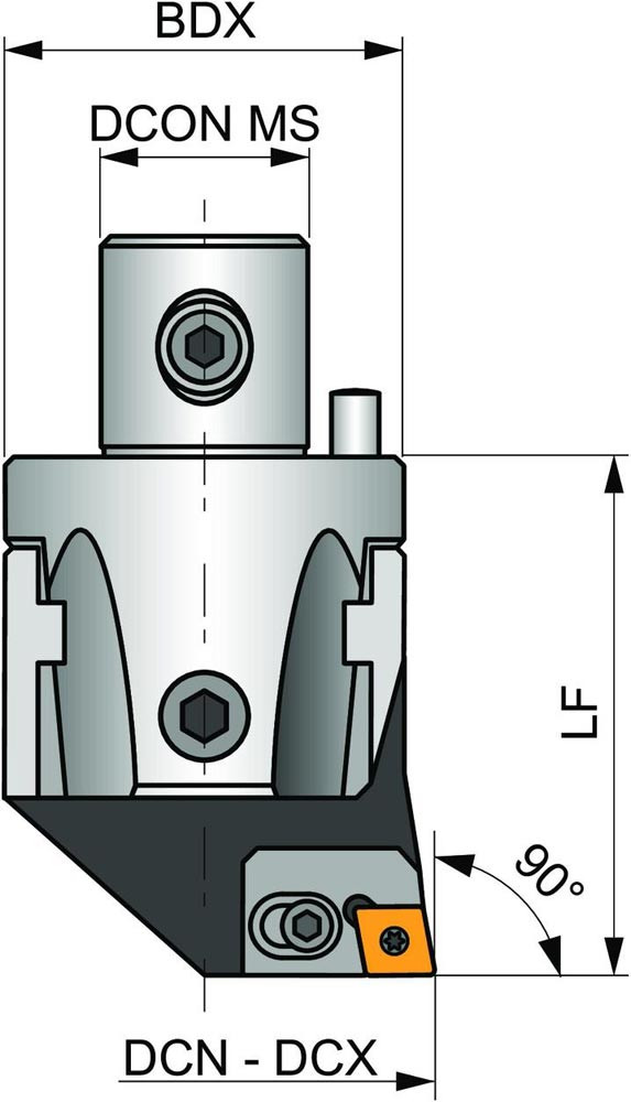 Verlängerung Typ Spindelbohrkopf Größe 85 mit 90° Anstellwinkel und 2 Mikron Einstellgenauigkeit zum Schlichten in einem Durchmesserbereich von 100 bis 125mm · zum Erweiterung mit 3CT 90 300 Verlängerung zum spannen von TC.. 16T3.. Wendeschneidplatten für Längsbohrung mit und ohne Schulter