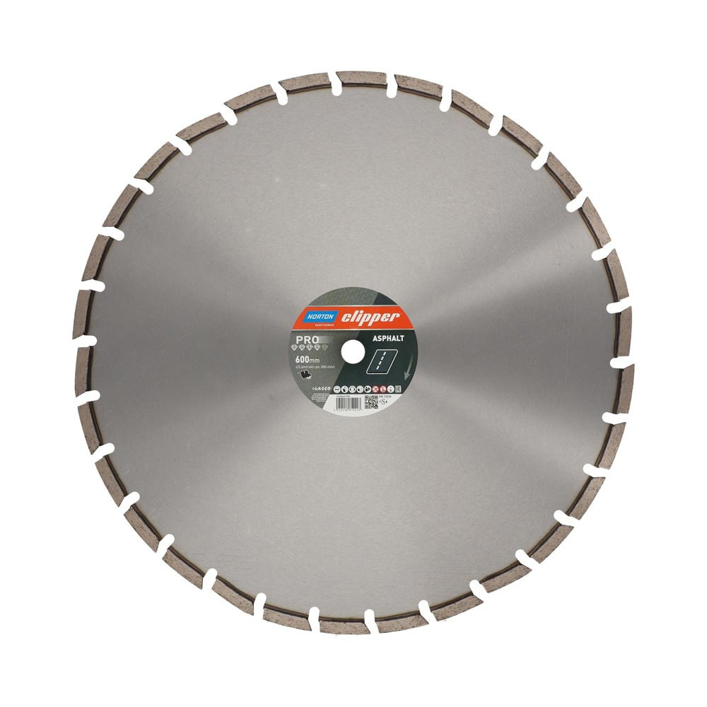 exzellente Standzeit, auch bei intensivstem Gebrauch, dank 12 mm hohen, lasergeschweißte Segmenten · mit patentiertem Schnitttiefenanzeiger, der Abnutzung und korrekte Drehrichtung anzeigt (bis Ø 450 mm) · Spezial-Schrägsegmente dienen als Unterschnittschutz und verhindern ein vorzeitiges Abnutzen des Blattes