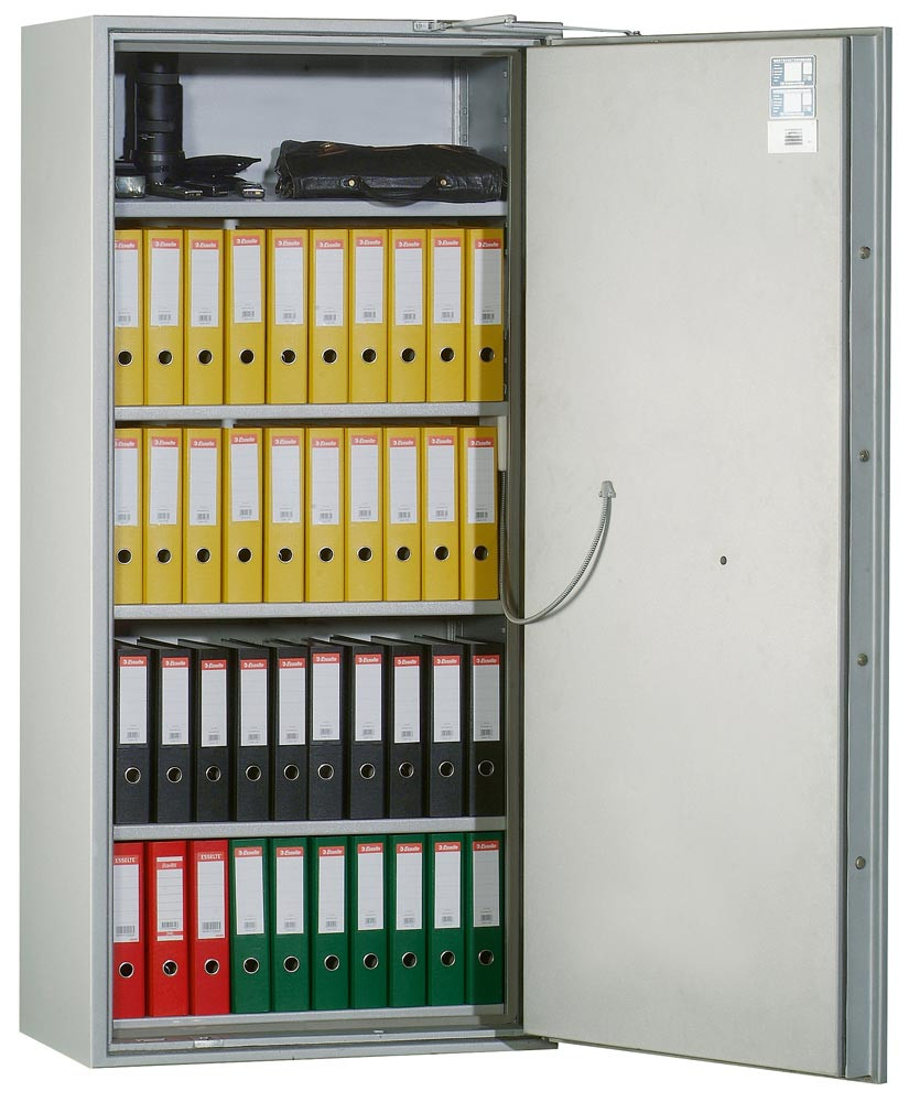 Dokumentenschrank, Sicherheitsstufe Kl. II, S60P, BxTxH 710x497x1158 mm, Volumen 186 l, 3 Böden, Kapazität 21 Ordner, RAL 7035 lichtgrau E862372