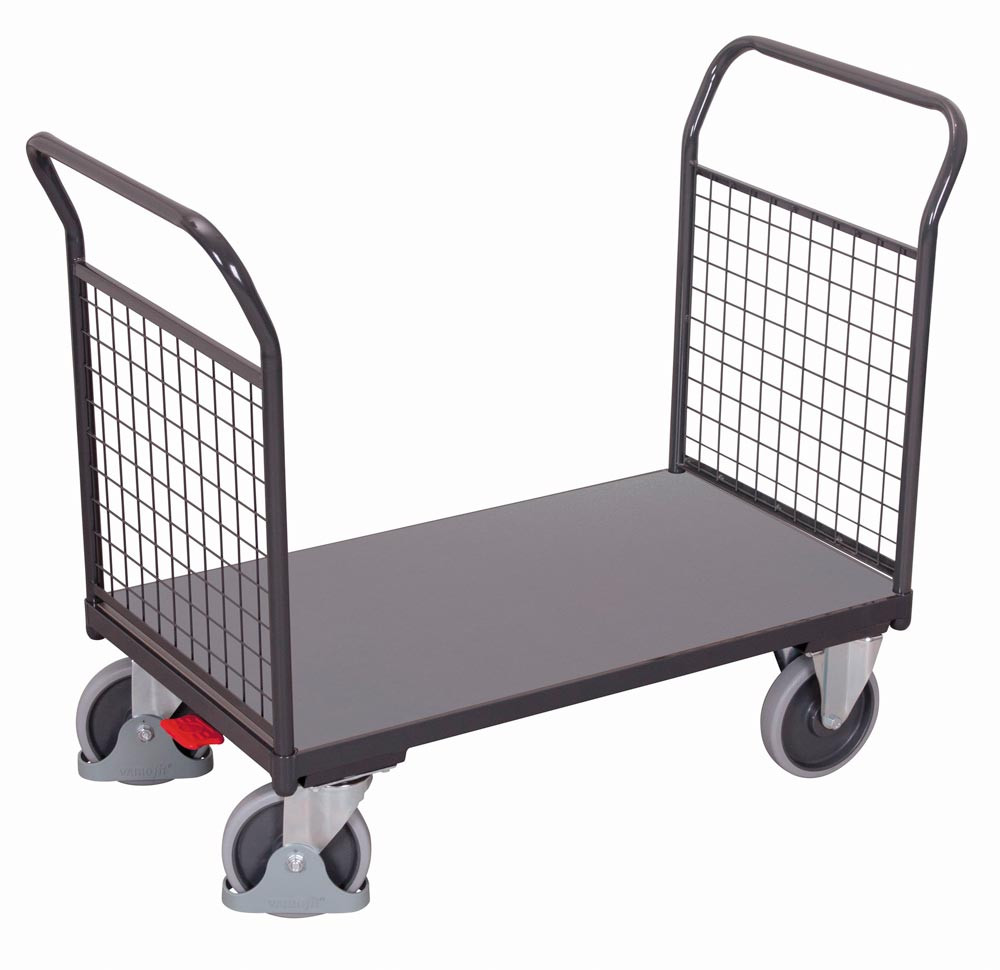 Stirnwandwagen mit Gitterwand, Ladefläche LxB 1030x700 mm, Außenmaße LxBxH 1125x700x1015 mm, Traglast 500 kg, RAL 7016 anthrazitgrau E6421301