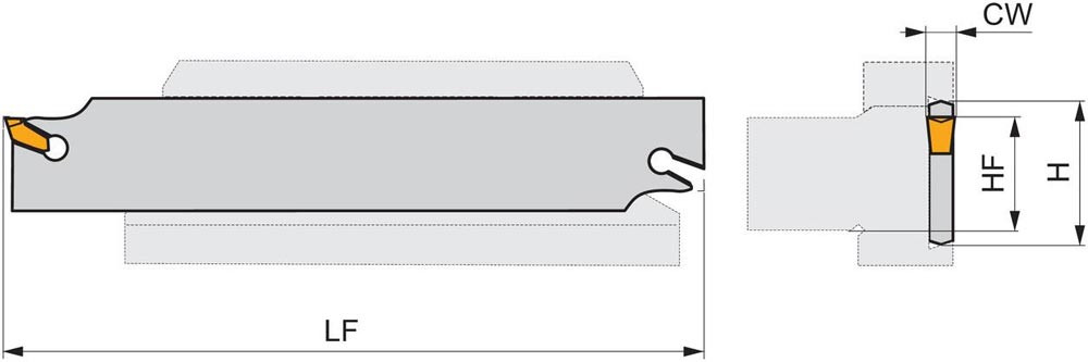 Ein-und Abstechschwert federgeklemmt zum spannen einer einseitigen Wendeschneidplatte mit 4mm Schnittbreite (Bezeichnung LFMX 4.1-. ) · Werkzeugbestückung mit 45-DU.. für eine maximale Einstechtiefe von 80mm · Werkzeugschwert-Höhe 45mm und Länge 250mm zum tiefes radiales Einstechen · Abstechen und Rohr-Abstechen