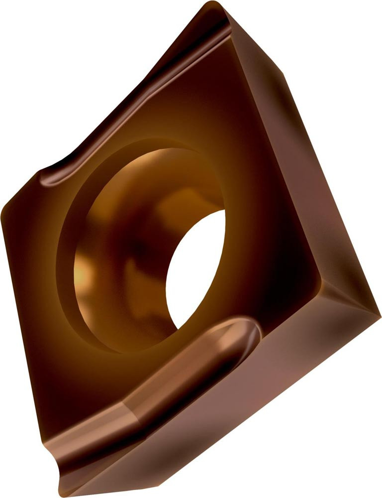 Einseitige positive Drehwendeschneidplatte · 80° Rhombisch mit 7° Freiwinkel · Innenkreisdurchmesser von 9.525mm · 3.97mm Dick · 0.4mm Radius · Indexgenauigkeit nach ISO-Toleranzklasse-G · Spanbrecher SI mit verrundeter Schneidkante · im Substrat T8430 · PVD beschichtet WC-Co Feinkornsubstrat in den ISO-Bereichen P20 -P40 und M20 -M35 · zum schlichten bis medium bearbeiten von Stählen und nichtrostenden Stählen mit einem rechtsschneidendem Werkzeug