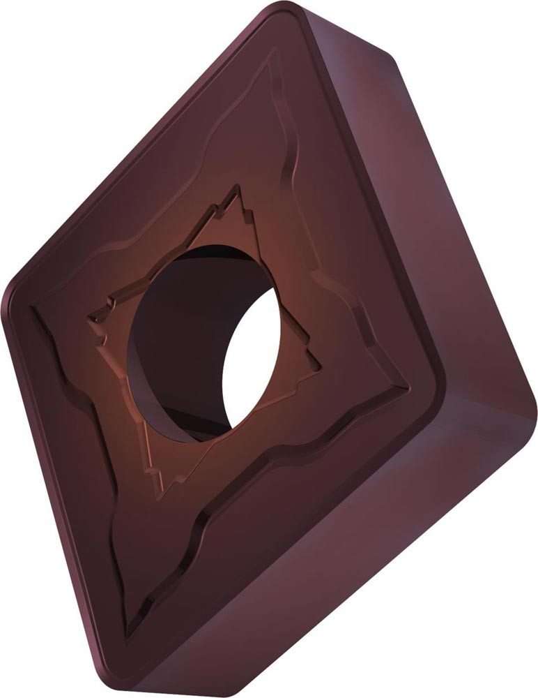 Doppelseitige negative Drehwendeschneidplatte · 80° Rhombisch mit Innenkreisdurchmesser von 19.05mm · 6.35mm Dick · 1.6mm Radius · Indexgenauigkeit nach ISO-Toleranzklasse-M · Spanbrecher NMR mit verrundeter Schneidkante · im Substrat T8430 · PVD beschichtet WC-Co Feinkornsubstrat in den ISO-Bereichen P20 -P40 und M20 -M35 · zum schlichten bis schruppen bearbeiten von Stählen und nichtrostenden Stählen
