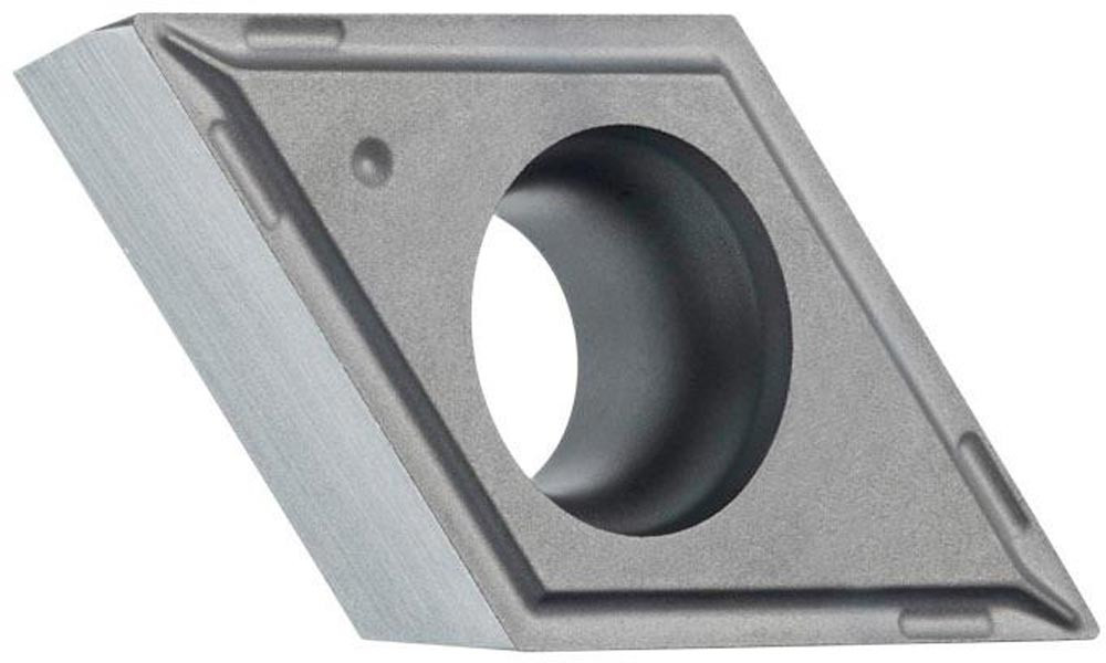 Einseitige positive Drehwendeschneidplatte · 55° Rhombisch mit 7° Freiwinkel · Innenkreisdurchmesser von 9.525mm · 3.97mm Dick · 0.2mm Radius · Indexgenauigkeit nach ISO-Toleranzklasse-G · Spanbrecher FF2 mit verrundeter Schneidkante · im Substrat TT010 · unbeschichtet Cermet im ISO-Bereich P01 -P10 · zum schlichten bis medium bearbeiten von Stählen