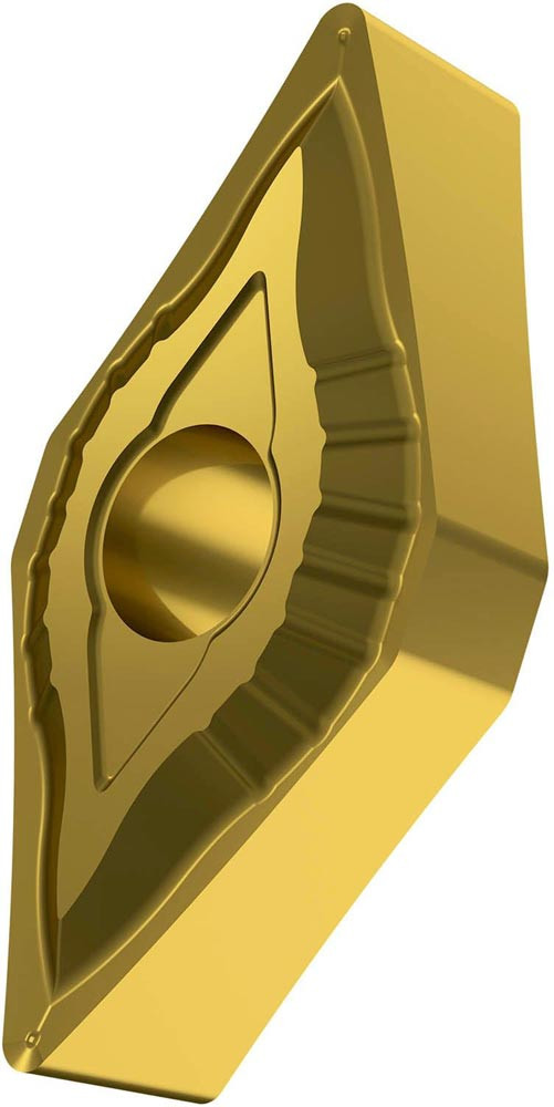 Doppelseitige negative Drehwendeschneidplatte · 55° Rhombisch mit Innenkreisdurchmesser von 12.7mm · 6.35mm Dick · 0.4mm Radius · Indexgenauigkeit nach ISO-Toleranzklasse-M · Spanbrecher SF mit verrundeter Schneidkante · im Substrat T8315 · PVD beschichtet WC-Co Feinkornsubstrat in den ISO-Bereichen M05 -M20/K05 -K25 und H05 -H15 · zum schlichten bis medium bearbeiten von nichtrostenden Stählen · Gusseisen und gehärtetem Material
