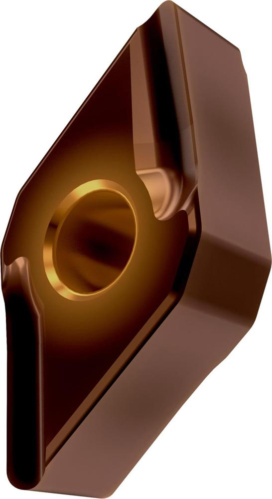 Doppelseitige negative Drehwendeschneidplatte · 55° Rhombisch mit Innenkreisdurchmesser von 12.7mm · 6.35mm Dick · 0.4mm Radius · Indexgenauigkeit nach ISO-Toleranzklasse-M · Spanbrecher SI mit verrundeter Schneidkante · im Substrat T8430 · PVD beschichtet WC-Co Feinkornsubstrat in den ISO-Bereichen P20 -P40 und M20 -M35 · zum medium bis schruppen bearbeiten von Stählen und nichtrostenden Stählen mit einem linksschneidendem Werkzeug