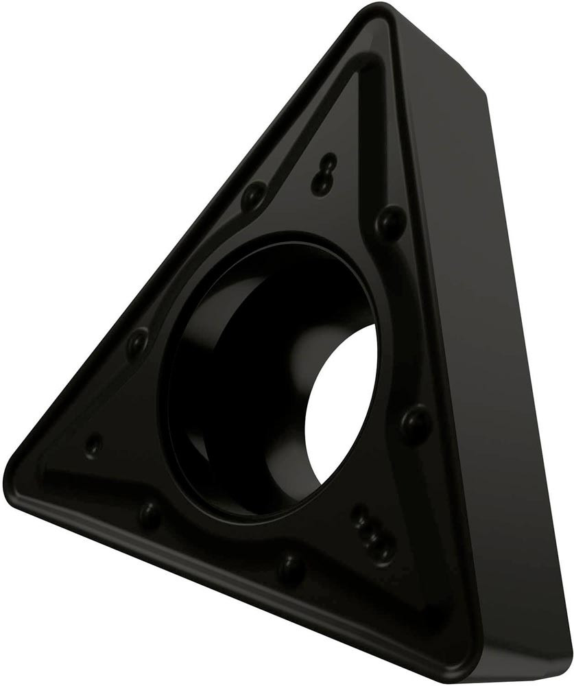 Einseitige positive Drehwendeschneidplatte · Triangular mit 7° Freiwinkel · Innenkreisdurchmesser von 9.525mm · 3.97mm Dick · 0.8mm Radius · Indexgenauigkeit nach ISO-Toleranzklasse-M · Spanbrecher RM mit verrundeter Schneidkante · im Substrat T5305 · MT-CVD beschichtet WC-Co Substrat im ISO-Bereich K01 -K15 · zum schlichten bis schruppen bearbeiten von Gusseisen