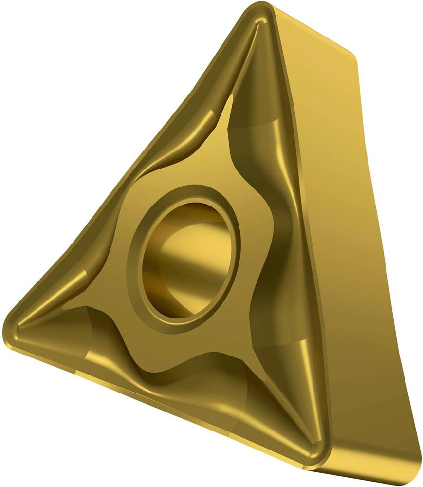 Doppelseitige negative Drehwendeschneidplatte · Triangular mit Innenkreisdurchmesser von 9.525mm · 4.76mm Dick · 0.4mm Radius · Indexgenauigkeit nach ISO-Toleranzklasse-M · Spanbrecher NF mit verrundeter Schneidkante · im Substrat T8315 · PVD beschichtet WC-Co Feinkornsubstrat im ISO-Bereich M05 -M20 · zum schlichten bis medium bearbeiten von nichtrostenden Stählen