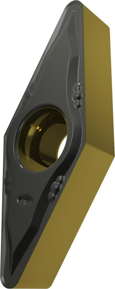 Einseitige positive Drehwendeschneidplatte · 35° Rhombisch mit 5° Freiwinkel · Innenkreisdurchmesser von 6.35mm · 3.18mm Dick · 0.8mm Radius · Indexgenauigkeit nach ISO-Toleranzklasse-M · Spanbrecher FM mit verrundeter Schneidkante · im Substrat T9415 · MT-CVD beschichtet WC-Co Substrat im ISO-Bereich P05 -P30 · zum schlichten bis medium bearbeiten von Stählen