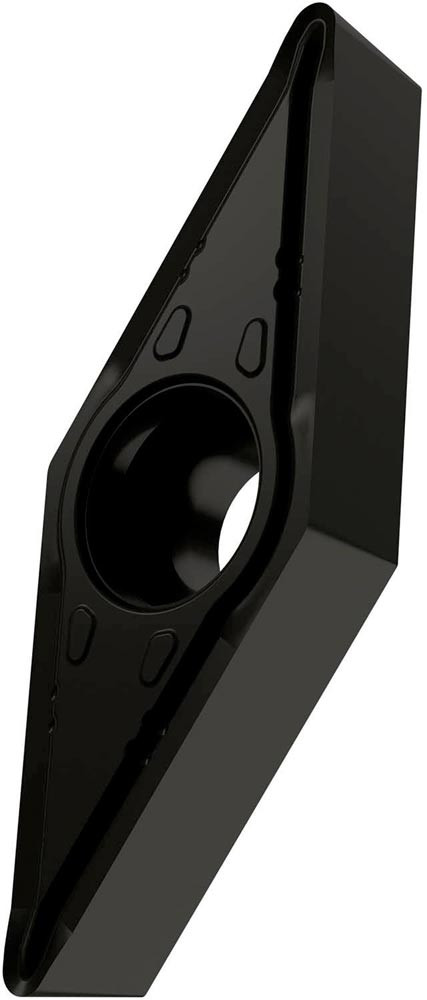 Einseitige positive Drehwendeschneidplatte · 35° Rhombisch mit 7° Freiwinkel · Innenkreisdurchmesser von 9.525mm · 4.76mm Dick · 0.8mm Radius · Indexgenauigkeit nach ISO-Toleranzklasse-M · Spanbrecher FM mit verrundeter Schneidkante · im Substrat T8430 · PVD beschichtet WC-Co Feinkornsubstrat in den ISO-Bereichen P20 -P40 und M20 -M35 · zum schlichten bis medium bearbeiten von Stählen und nichtrostenden Stählen