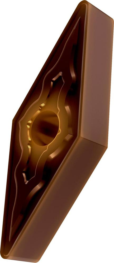 Doppelseitige negative Drehwendeschneidplatte · 35° Rhombisch mit Innenkreisdurchmesser von 9.525mm · 4.76mm Dick · 1.2mm Radius · Indexgenauigkeit nach ISO-Toleranzklasse-M · Spanbrecher NMR mit verrundeter Schneidkante · im Substrat T8430 · PVD beschichtet WC-Co Feinkornsubstrat in den ISO-Bereichen P20 -P40 und M20 -M35 · zum schlichten bis schruppen bearbeiten von Stählen und nichtrostenden Stählen