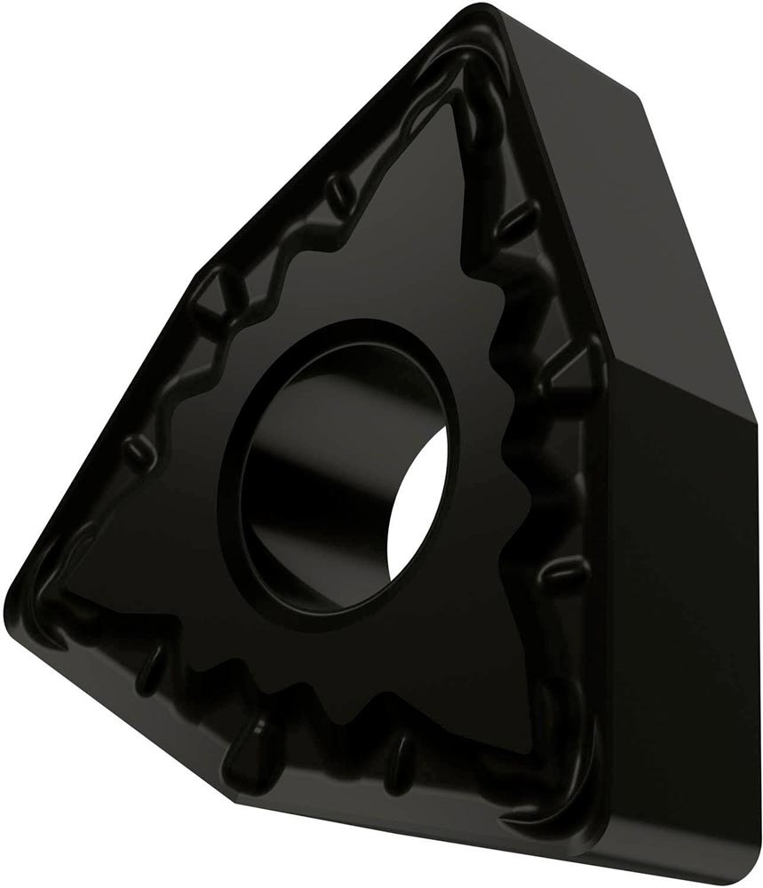 Doppelseitige negative Drehwendeschneidplatte · 80° Trigon mit Innenkreisdurchmesser von 12.7mm · 4.76mm Dick · 0.4mm Radius · Indexgenauigkeit nach ISO-Toleranzklasse-M · Spanbrecher FM mit verrundeter Schneidkante · im Substrat T9325 · MT-CVD beschichtet functionally graded WC-Co carbide im ISO-Bereich P15 -P35 · zum schlichten bis medium bearbeiten von Stählen
