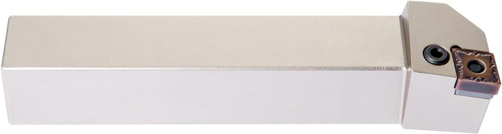 Dreh-Trägerwerkzeug mit Kniehebelklemmung zum spannen von 80° Rhombus negative Wendeschneidplatten mit einem Innenkreisdurchmesser von 12.7mm · 4.76mm Dick (ISO Bezeichnung CN.. 1204.. ) · linke Ausführung zum 95° Stirn-und Längsdrehen mit abgesetzem Schaft · 25mm Werkzeughöhe x 25mm Breite x 150mm Länge für Kegeldrehen · Stirndrehen mit und ohne Schulter und Längsdrehen mit und ohne Schulter