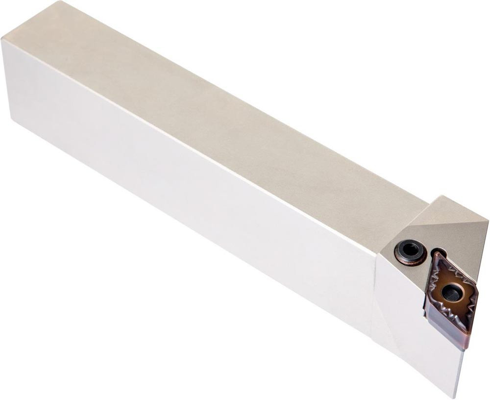 Dreh-Trägerwerkzeug mit Kniehebelklemmung zum spannen von 55° Rhombus negative Wendeschneidplatten mit einem Innenkreisdurchmesser von 12.7mm · 6.35mm Dick (ISO Bezeichnung DN.. 1506.. ) · linke Ausführung für Sonderanwendungen · 25mm Werkzeughöhe x 25mm Breite x 150mm Länge für Kegeldrehen · Kopierdrehen in einer und mehreren Richtungen und Längsdrehen mit und ohne Schulter