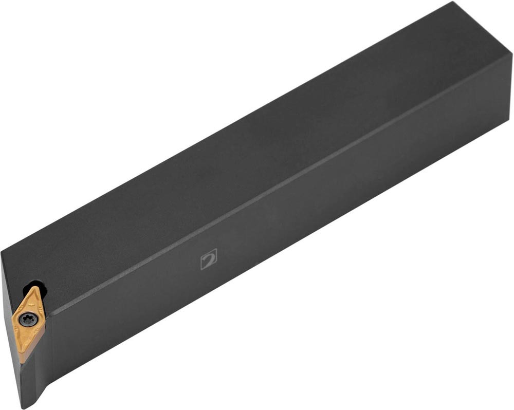 Dreh-Trägerwerkzeug mit Schraubklemmung zum spannen von 35° Rhombus positive Wendeschneidplatten mit einem Innenkreisdurchmesser von 6.35mm · 3.18mm Dick (ISO Bezeichnung VB.. 1103.. ) · rechte Ausführung zum 62.5° · linkes und rechtesStirndrehen · 20mm Werkzeughöhe x 20mm Breite x 125mm Länge für Kegeldrehen · Kopierdrehen in einer und mehreren Richtungen und Längsdrehen mit und ohne Schulter