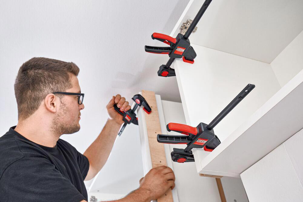 zum Fixieren von Führungsschienen der Marken Festool, Protool, Metabo, Makita, Hitachi/Hikoki, Dewalt etc. (Nutenabmessungen 12 x 6,5 mm bis 12 x 8 mm) sowie der Marken Bosch und Mafell dank aufschiebbarem Adapter (Nutenabmessungen 12 x 1,8 mm) · 2 St./VE