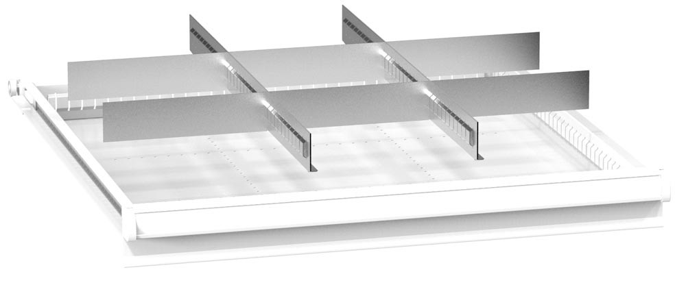 Einteilungsmaterial-Set, 2 Schlitzwände, 6 Trennbleche, für FH 300 mm, passend für Gehäusegröße BxT 731x753 mm E1613800