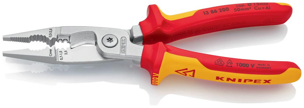 Elektroinstallationszange Länge 200 mm VDE verchromt Mehrkomponenten-Hüllen mit Öffnungsfeder E1736428