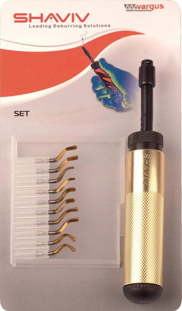 Aluminiumhandgriff, Klingenhalter B, 5 verschiedene Paare TiN-beschichteter B-Klingen: B10Px2, B11Px2, B12Px2, B20Px2, B30Px2