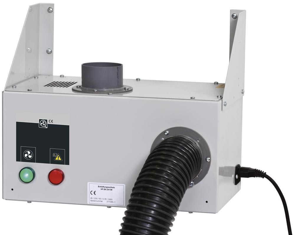 ∙ Zur Montage an der Wand ∙ Inklusive Befestigungskonsole, flexiblem Absaugeschlauch, Schlauchschellen und Befestigungsmaterial