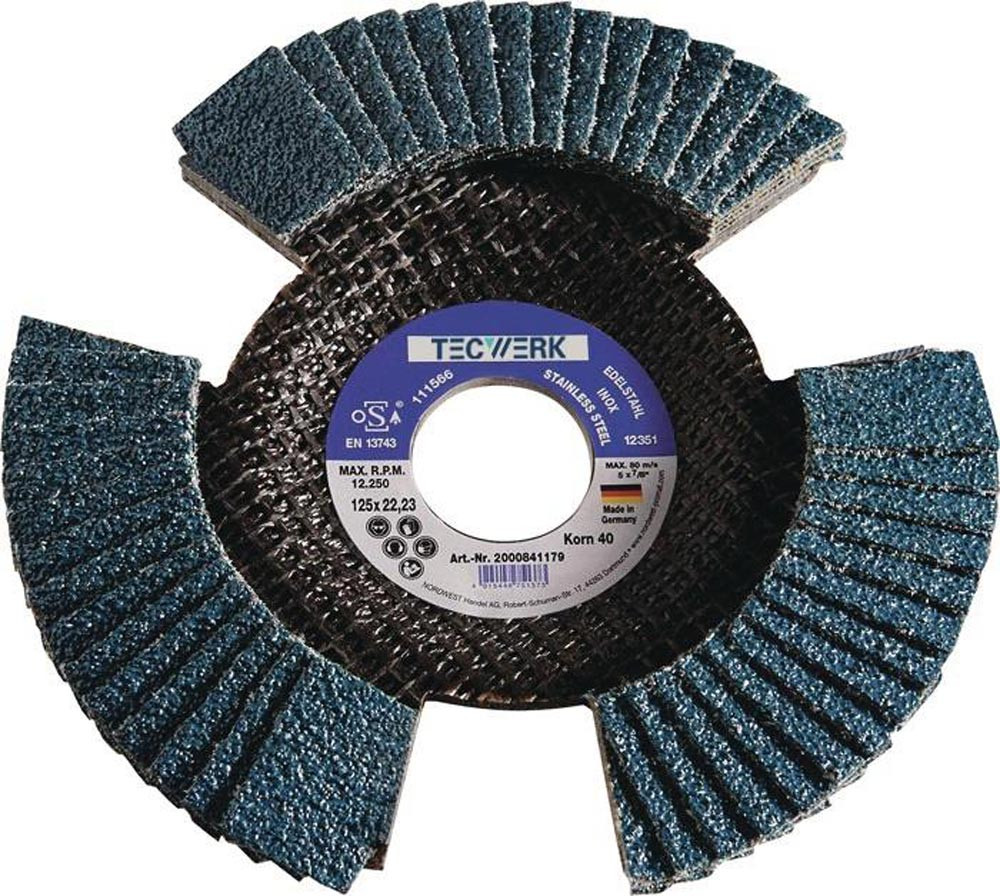 Fächerscheibe Ø 125 mm Körnung 40 konisch INOX/Stahl Zirkonkorund