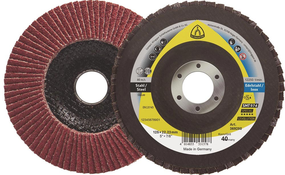 Fächerscheibe SMT 974 Ø 125 mm Körnung 40 mm gewölbt Stahl keramischer Korund E6513699