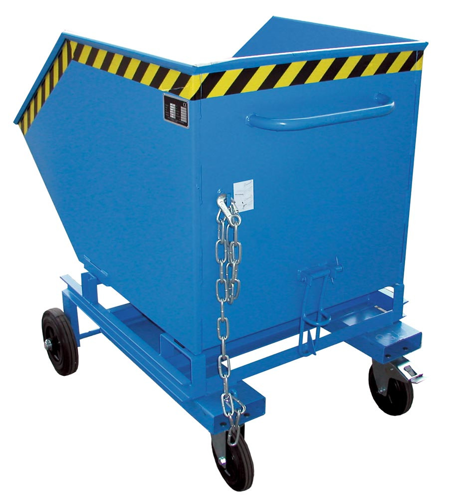 Fahrbarer Kippbehälter mit Einfahrtaschen, Volumen 0,6 cbm, LxBxH 1395x1070x1220 mm, lackiert RAL 5012 lichtblau