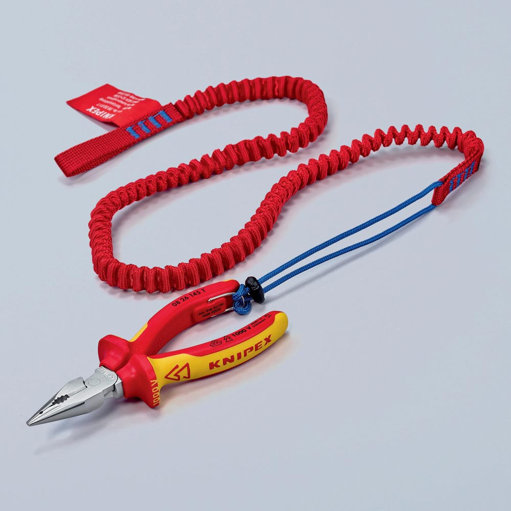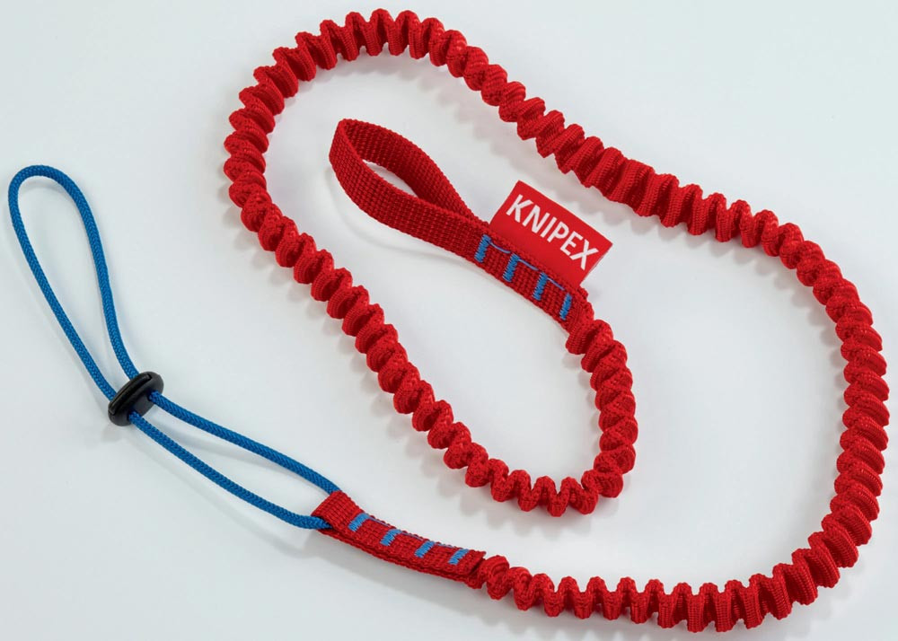 schützt das Werkzeug zuverlässig vor dem Herunterfallen · passend für alle KNIPEX-Zangen mit Befestigungsöse · für Werkzeuge bis 6 kg · extrastarke Fangleine mit flexibler Anbindung · auch Akku-Werkzeuge