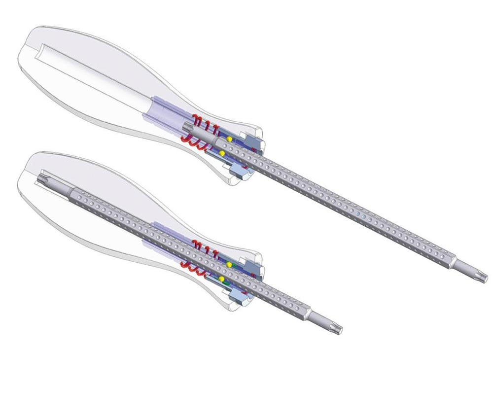 mit Kombi-Wechselklingen und Teleskop-Griff · Klingenlänge variabel verstellbar von 18 - 90 mm · Klingen aus Chrom-Vanadium-Molybdän-Stahl, Ø 4 mm · matt verchromt · ChromTop®-Klingenspitzen