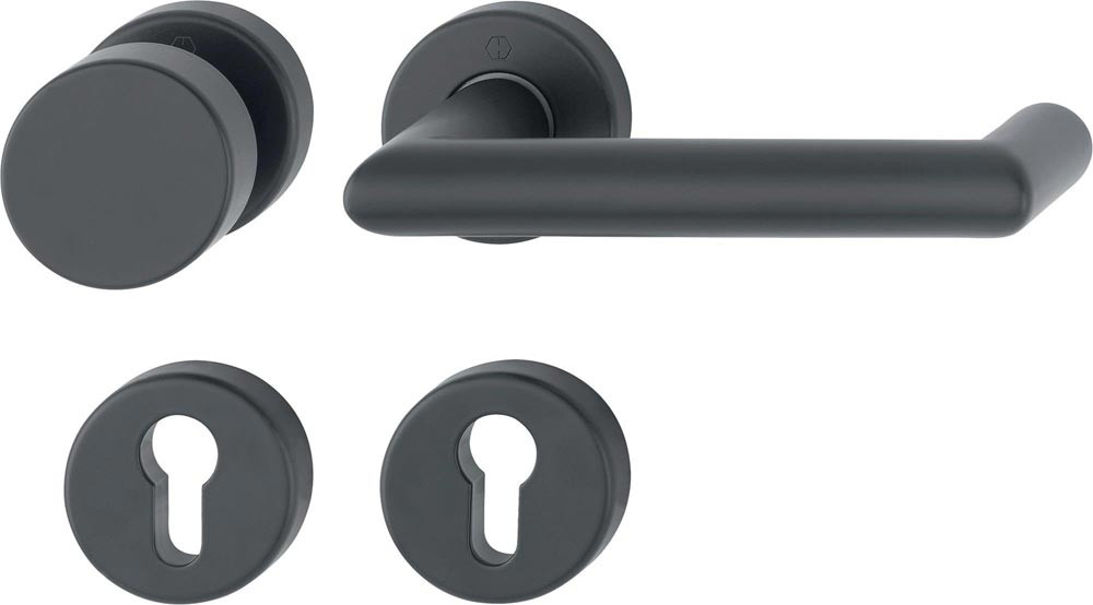 Feuerschutzgarnitur Rotterdam FS-58/42H/42HS/1401 Aluminium F9714M K/D für Türstärke 45-65 mm PZ rund DIN links / rechts