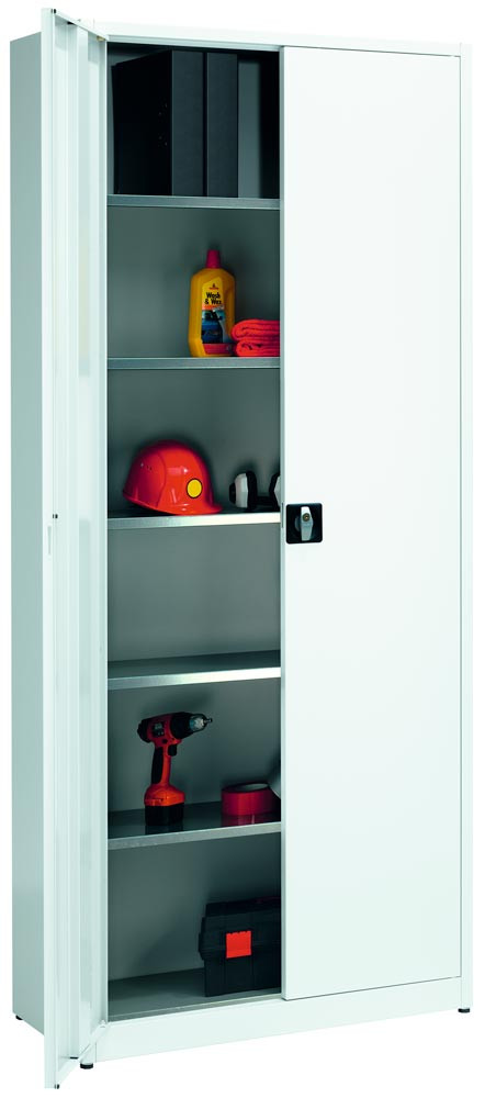Flügeltürenschrank, Vollblechtüren, 5 verzinkte Böden, BxTxH 950x420x2200 mm, RAL 7035 E6041833