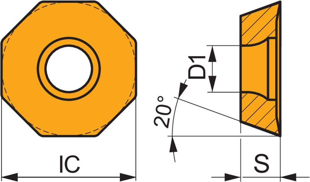 Einseitige Fräswendeschneidplatte OEHT 0604 mit Spanbrecher · Oktagonal für eine maximale Schnitttiefe von 3.3mm · mit eine Indexierungsgenauigkeit gemäß ISO-Toleranzklasse-H und FA Geometrie mit scharfer Schneidkante · M0315 PVD Beschichtung WC-Co Feinkornsubstrat in der ISO-Gruppe N05 -N25 zum bearbeiten von Nichteisenmetallen mit Planfräsern SOE06Z