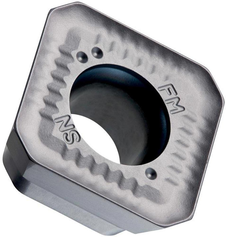 Einseitige Fräswendeschneidplatte SDKT 1205 mit Spanbrecher · Viereckig für eine maximale Schnitttiefe von 10.0mm · mit eine Indexierungsgenauigkeit gemäß ISO-Toleranzklasse-K und FM Geometrie mit verrundeter und facettierter Schneidkante · M8345 PVD Beshcichtung WC-Co Substrat in der ISO-Gruppe P30-P50 zum bearbeiten von Stahl mit Kopierplanfräsern SOD05