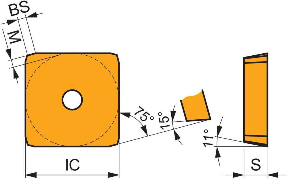 Einseitige Fräswendeschneidplatte SPKN 1203 mit einem ebenen Spanwinkel · Viereckig rechtsschneidend für eine maximale Schnitttiefe von 9.0mm · mit eine Indexierungsgenauigkeit gemäß ISO-Toleranzklasse-K mit verrundeter und facettierter Schneidkante · M9325 MT-CVD Beshcichtung WC-Co Substrat in der ISO-Gruppe K10 -K30 zum bearbeiten von Gusseisen
