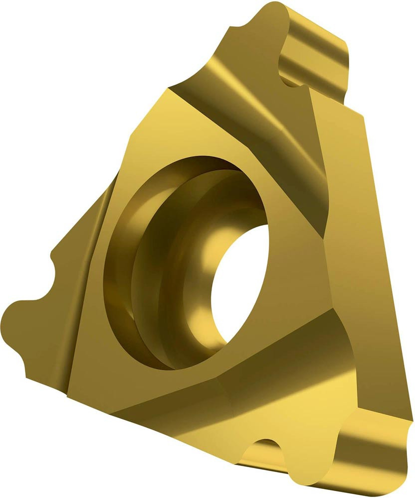 Einseitige Gewindedreh-Wendeschneidplatte · dreieckig mit einem Innenkreisdurchmesser von 9.525mm · für rechtsschneidende Werkzeuge für RD-Außengewinde mit 8TPI · T8030 PVD beschichtet feinkörniges WC-Co-Hartmetall innerhalb der ISO-Substrats-Bereiche P25-P40/M20-M35 und K20-K40 zum zerspanen von Stahl · Edelstahl und Guss